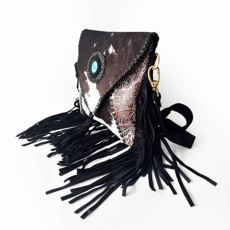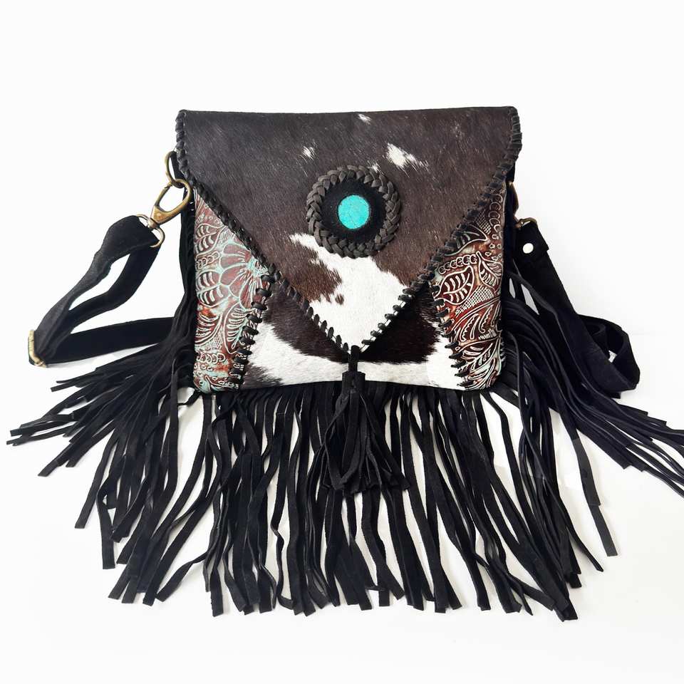 Hot Selling Handcrafted Leather Cowhide Fur Designer Crossbody Bag Fringe Western Boho Vintage Long Strap Womens Style Sling Bag