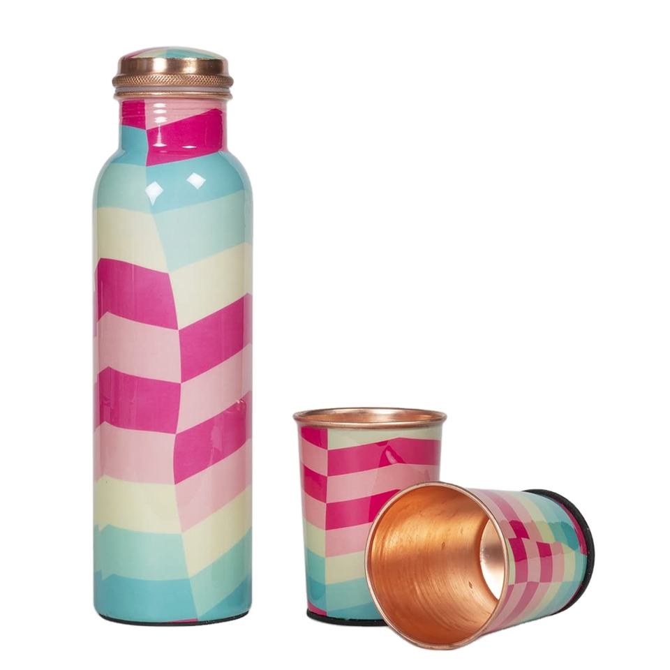 Hot Selling Handcrafted Original Top Selling Enamel Printed Copper Water Drinking Bottle With Glass