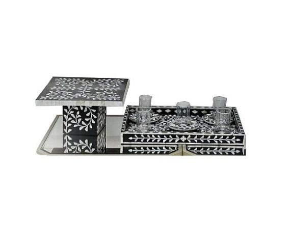 Hot Selling Handmade Bone Inlay Wooden Cake Stand Quality Handicrafts for Birthday & Wedding Handmade in India