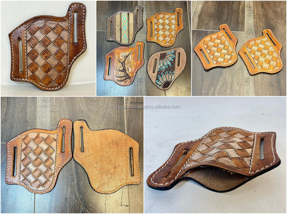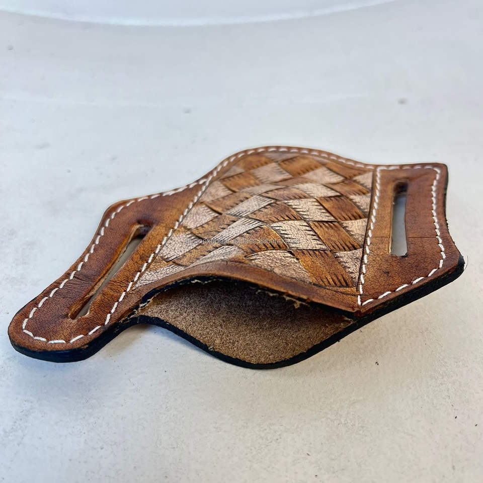 Hot Selling Handmade Checkered Hand Tooled Leather Knife Sheath for Belts High Quality Luxury Genuine Leather Knife Covers