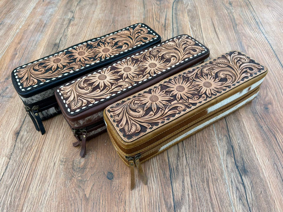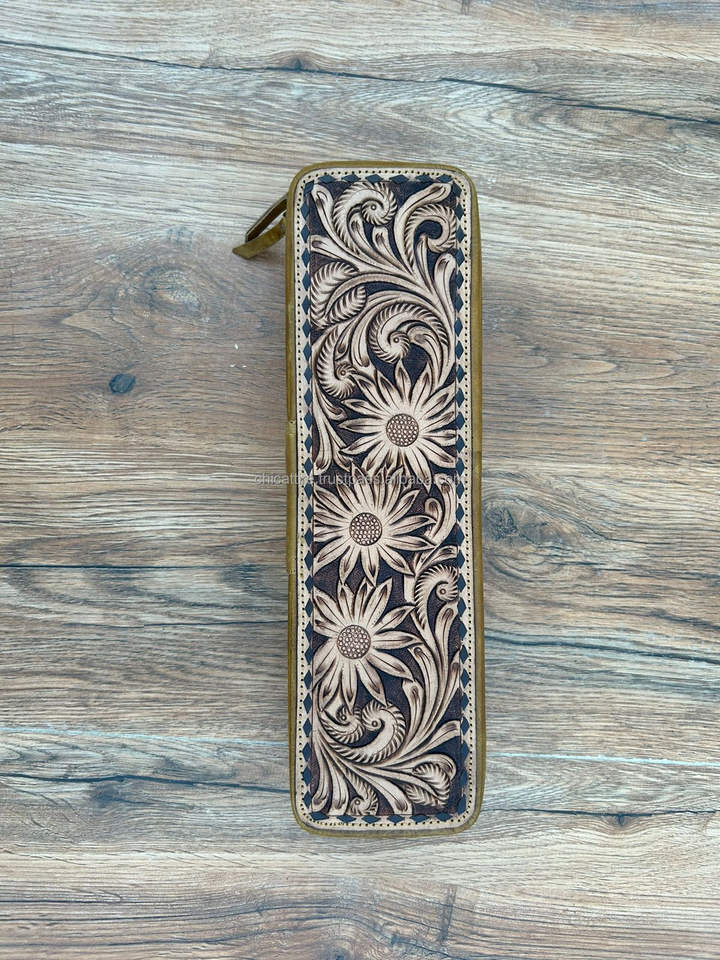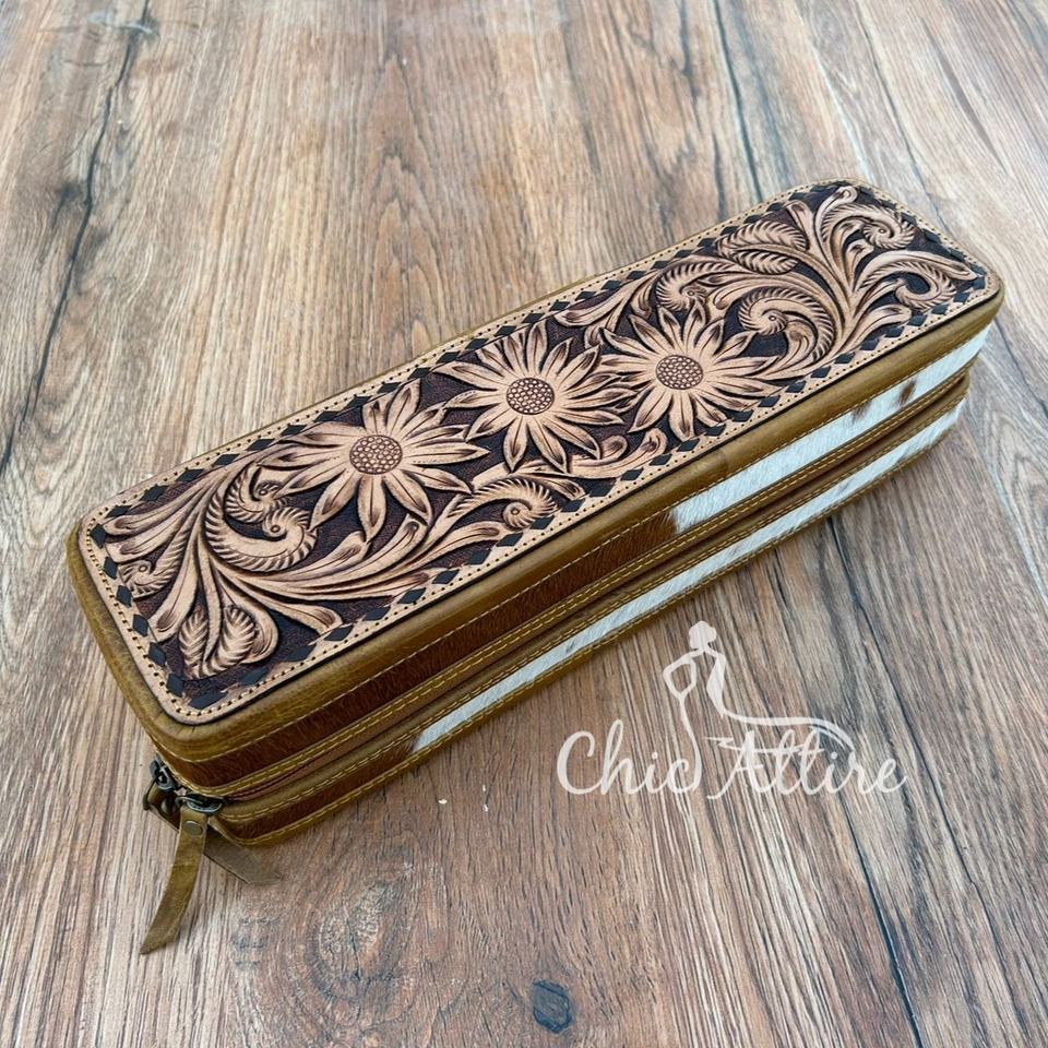 Real Tooled Leather Straightener Travel Cases