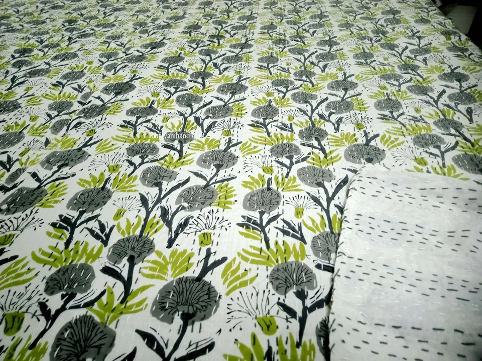 Hot Selling Handmade Indian Vintage Floral Printed Cotton Kantha Quilt Reversible Bedding Bedspread Throw Blanket