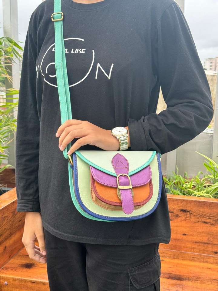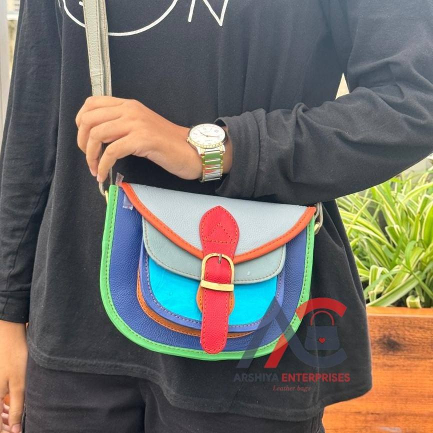 Hot Selling Handmade Leather Bag Recycled Leather Purse Colorful Leather Shoulder Strap Woman Handbag Medium Sze Crossbody Purse
