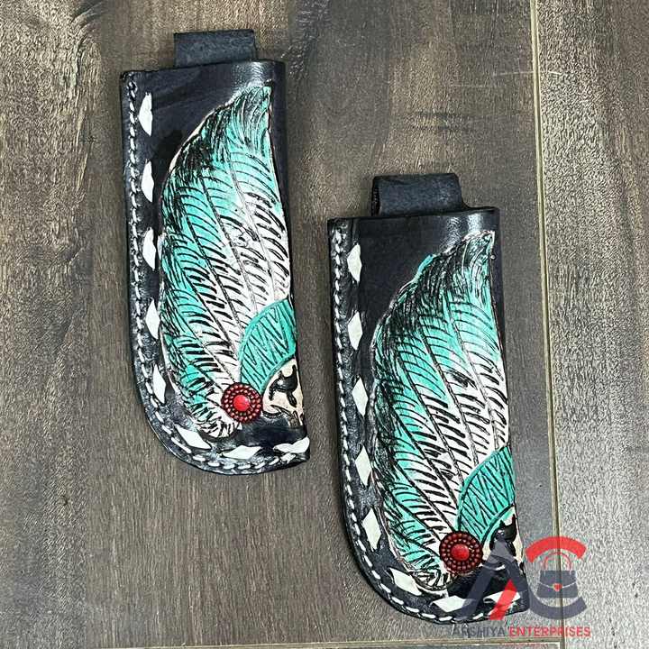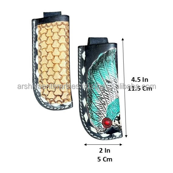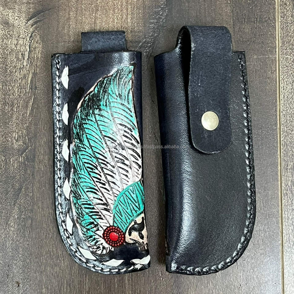 Hot Selling Handmade Tooled Leather Folding Knife Clip Case Western Floral Genuine Leather Folding Knife Pouch with Belt Loop
