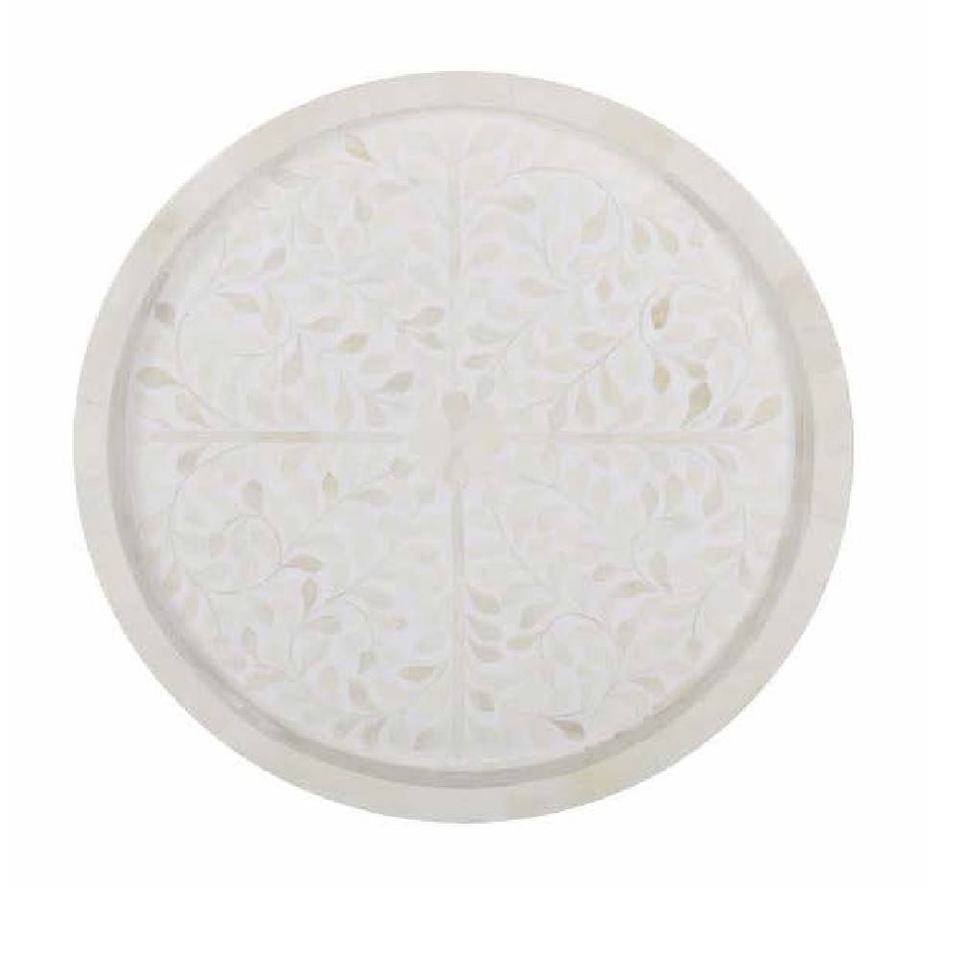 Hot Selling Hexagonal Design Bone Inlay Cream Color 35x35x5cm Handcrafted Serving Tray Table Top Decorative Wholesale Price