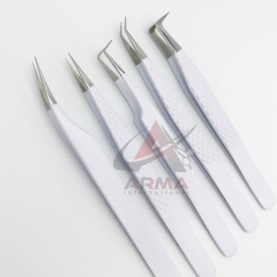 Hot Selling High Custom Logo Stainless Steel Eyelash Extension Tweezers White Powder Coated Sustainable Fiber Isolation Pointed