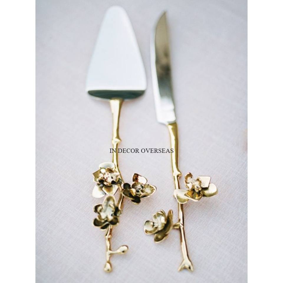 Hot Selling High Grade Gold Plated Flowers Designer Handle For Silver Color Cake Server And Knife Supplies In Impressive Price