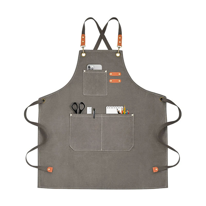 Hot Selling High Quality Bib Aprons Made of Jeans Canvas Genuine Leather With Adjustable Strap Ties Leather Work Aprons