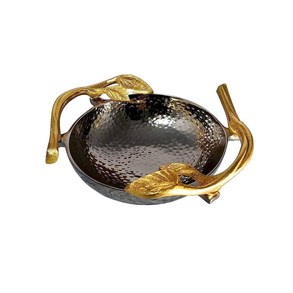 Hot Selling High Quality Decorative Fruit Serving Bowl hand made With golden plating Finishing & Aluminum Metal Stand