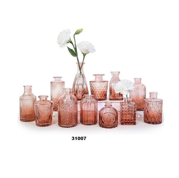Hot Selling High Quality Set of 12 Pcs Pick Glass Flower Vases Mini Cute Vases Ideal for Home Living Room Office Decor