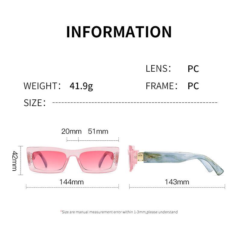 Hot Selling High Quality Unisex Fashion Colorful Gold White Square PC Lens Sunglasses UV400 Outdoor Travel