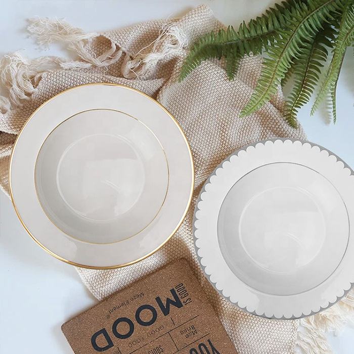Hot Selling High Quality White Ceramic Dinner Set Gold Rim Charger Plate Wedding Plates