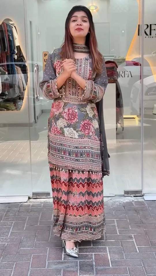 WROK:DIGITAL PRINT WITH REAL MIRROR HAND WORK AND VAL LESS