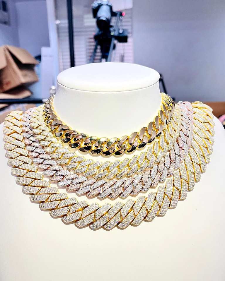 Hot-Selling Hip-Hop Diamond Miami Cuban Rope Chain Peace Necklace Street Fashion Brand Rap 14mm Width Man