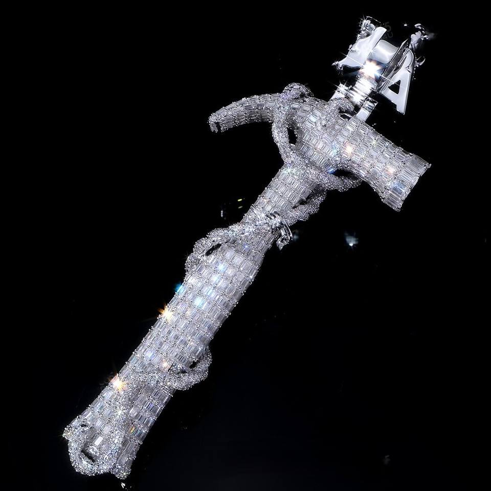 Hot Selling Hip Hop Unisex Shiny Rhodium Plated VVS D S925 Silver Moissanite Stones Charm Cross Pendant Fine Jewelry