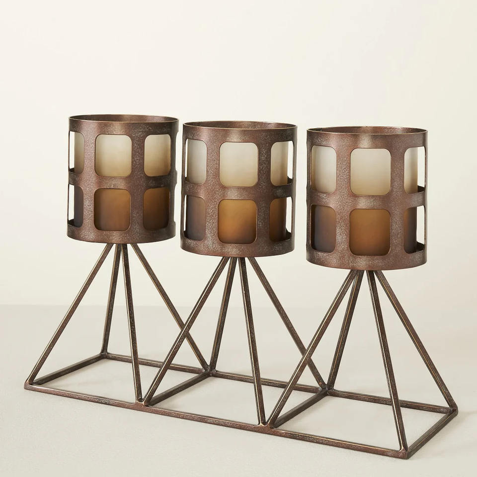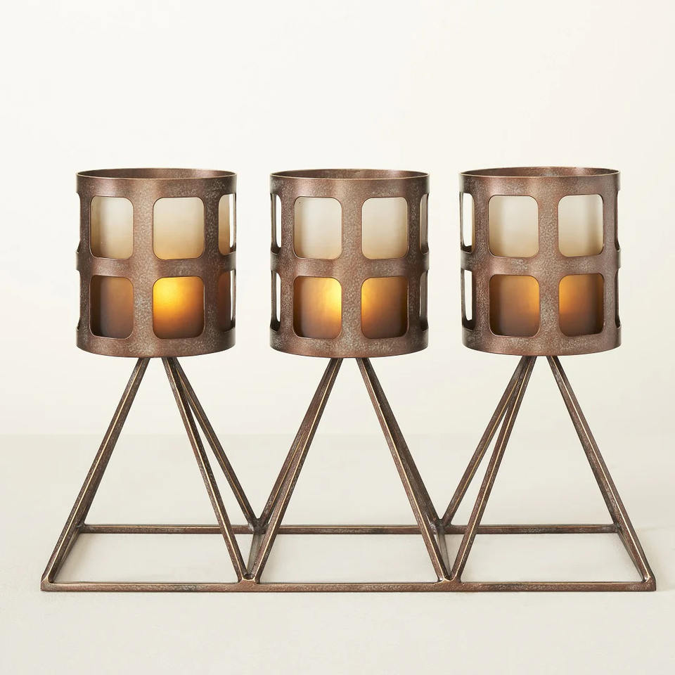 Hot Selling Home Decoration Matt Black Color Wonderful Triangular Shape Iron and T-Light Holder With Base Handmade