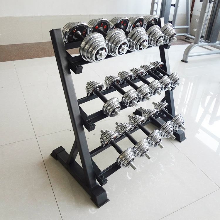 Hot Selling Home Gym Commercial Fitness Equipment 2.5Kg-50Kg Hex Dumbell Set With Rack Three-Layer Dumbbell Rack and Stand