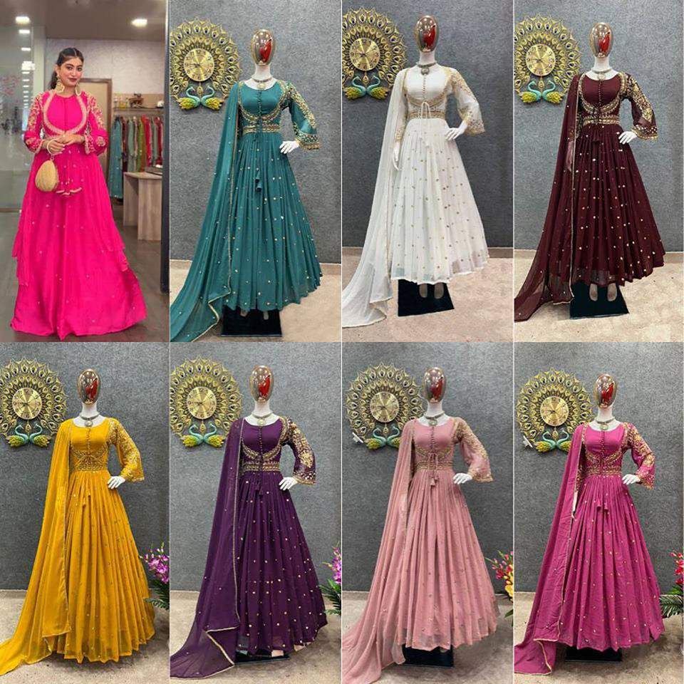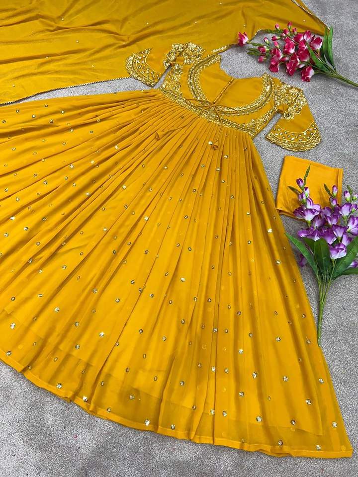 Hot Selling Indian Ethnic Wedding Dress Eco-Friendly Party Wear Heavy Embroidery Sequence Work Gown Dupatta Trendy Natural Style