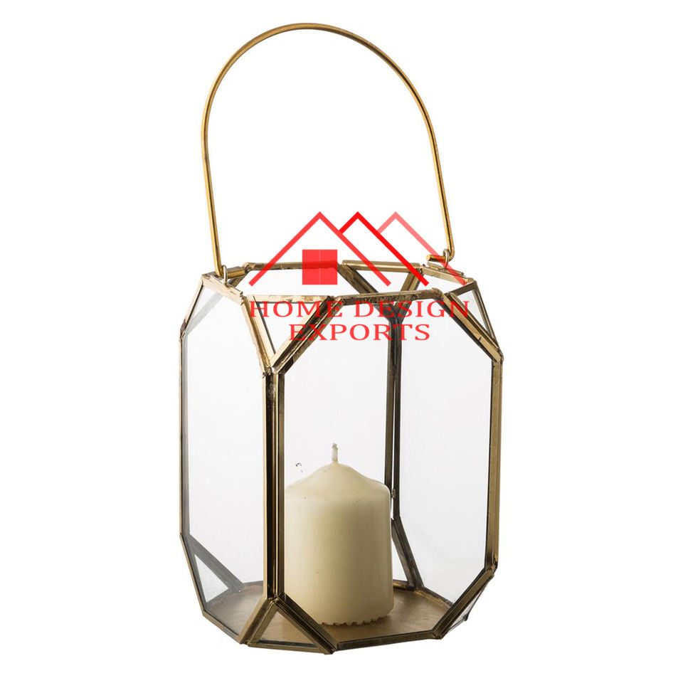 Hot Selling Iron Hanging Candle Lantern for Wedding Decor Pure Brass and Glass Candle Lantern with Handle for Garden Decor
