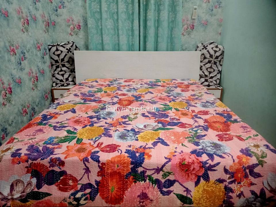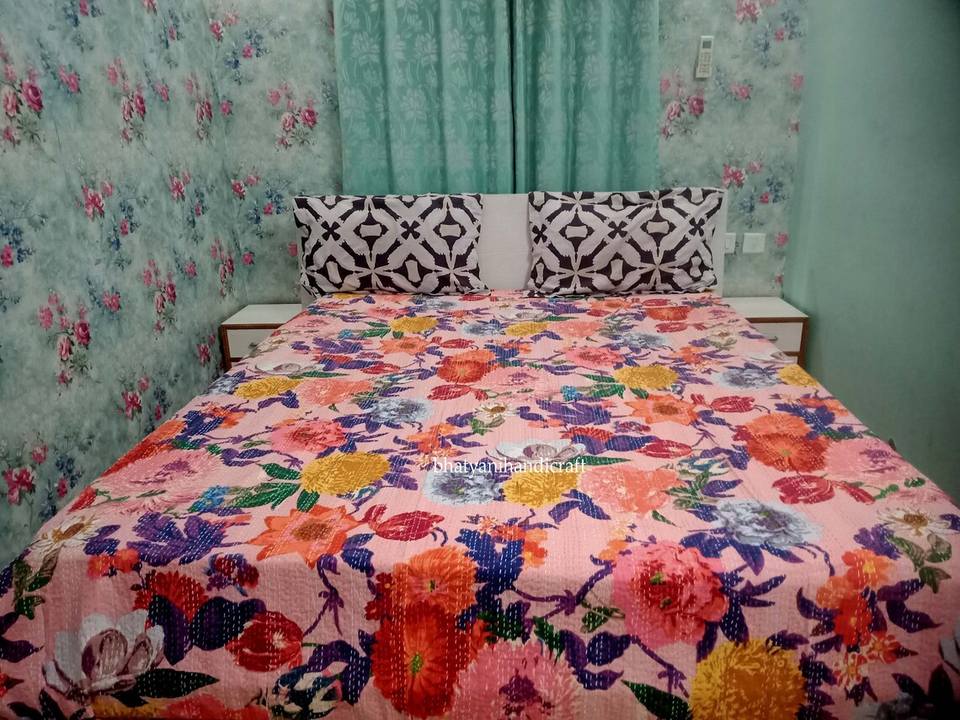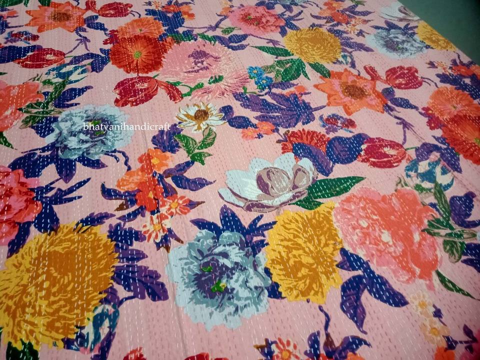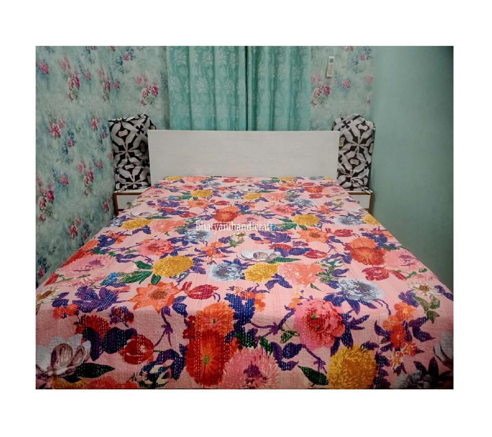 Hot Selling King Size 100% Cotton Vintage Floral Printed Kantha Quilt Handstitched Kantha Bedcover Bedding and Bedspread