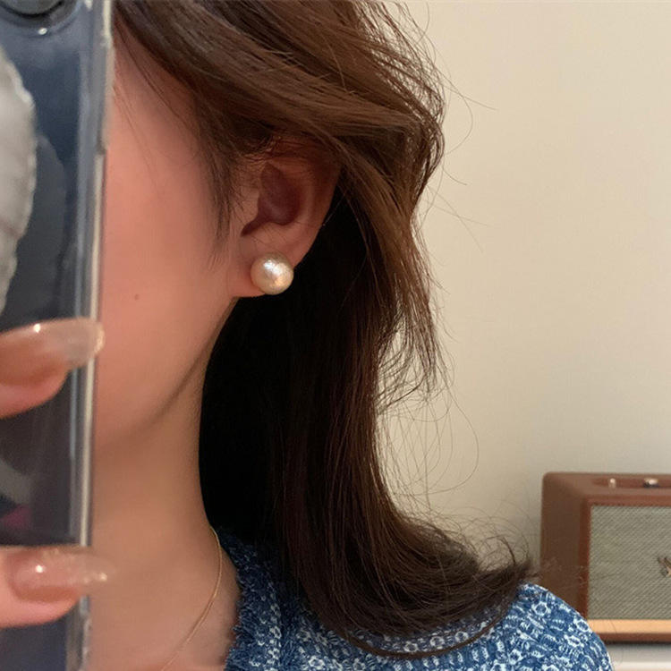 Hot Selling Korean Mona Cotton Pearl Earrings Jewelry French Retro Uneven 12mm 16mm 20mm Big Pearl Stud Earrings Women