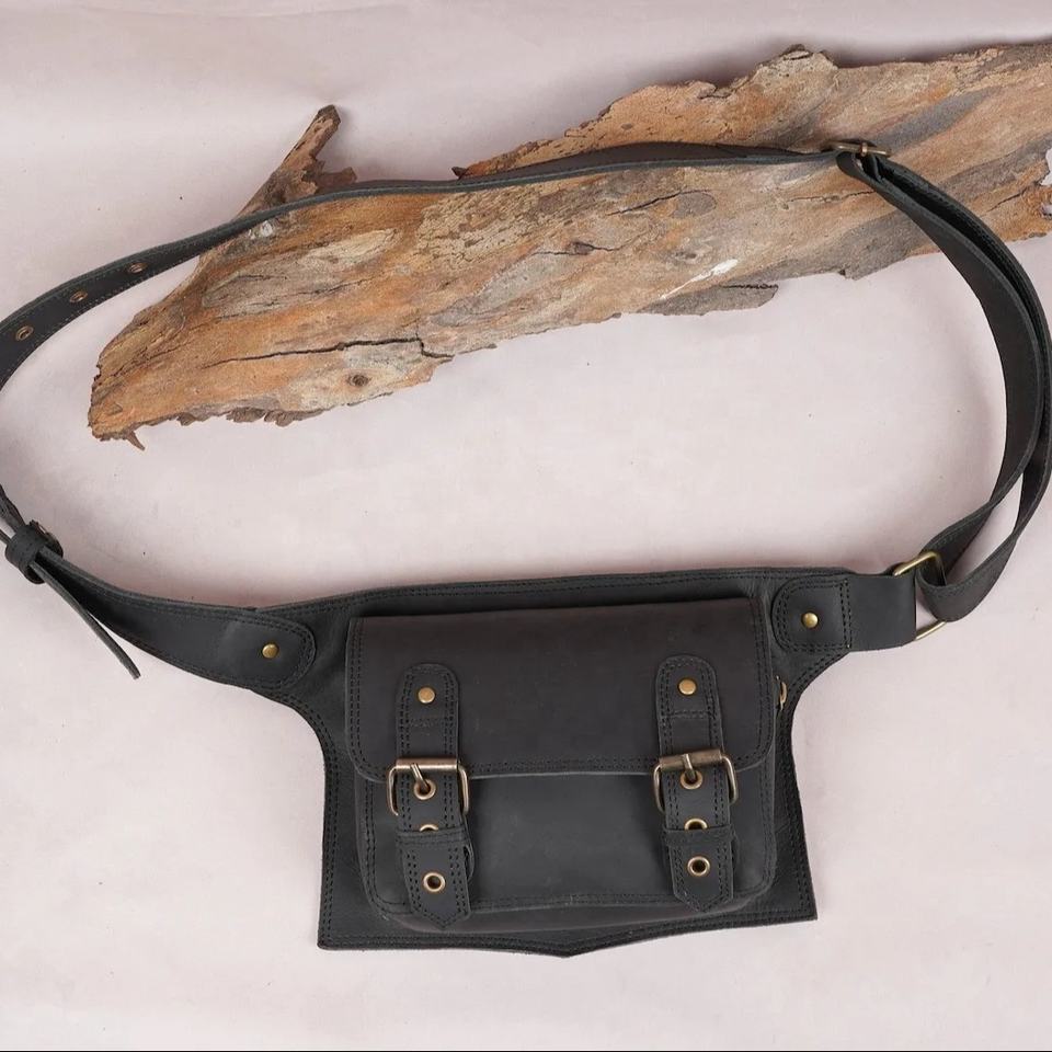 Hot Selling LWB-0066 Handmade Genuine Leather Waist Bag Adjustable Belt Zipper Anti-theft Vintage Daily Travel Festival Fanny