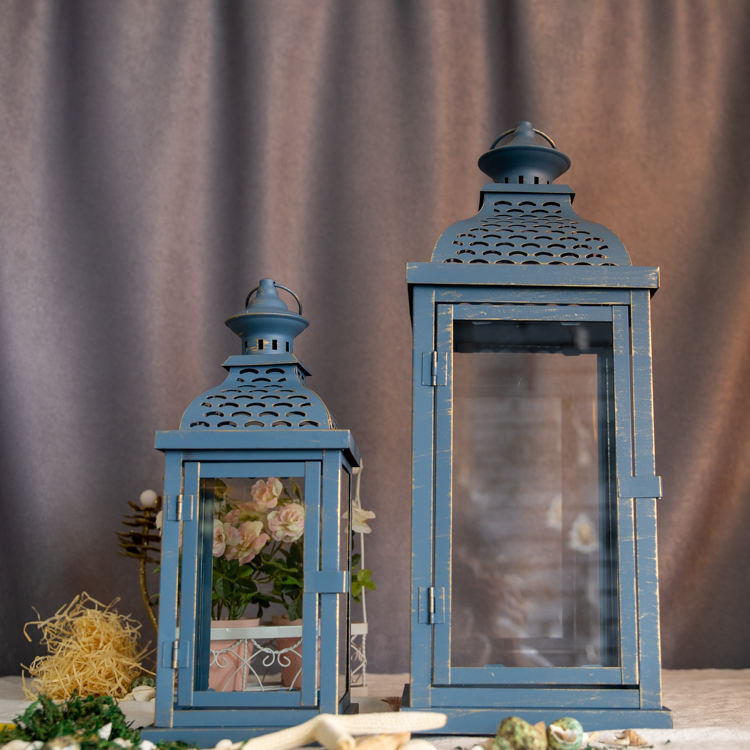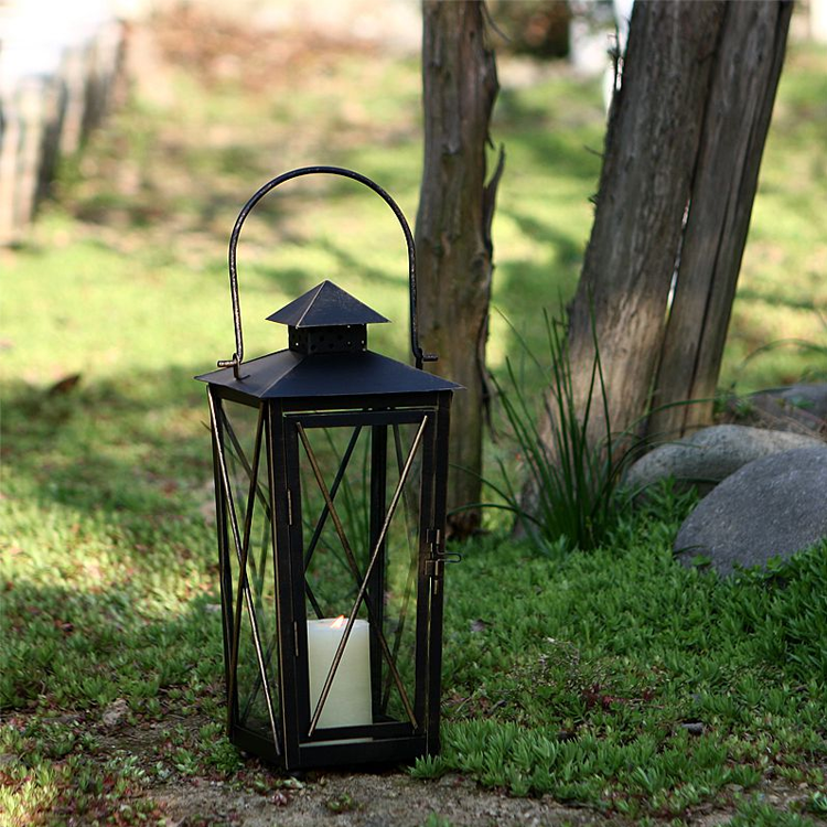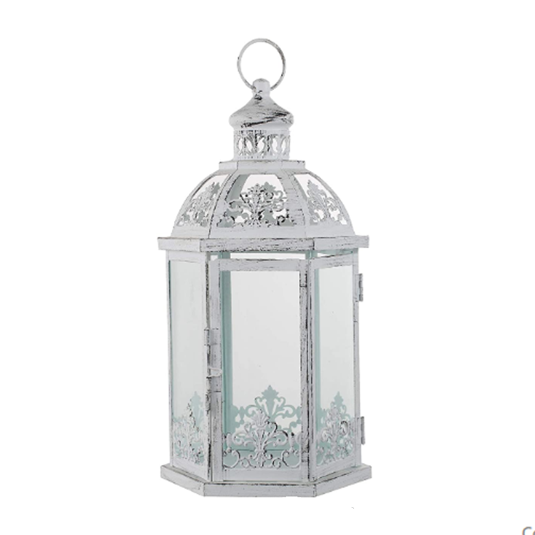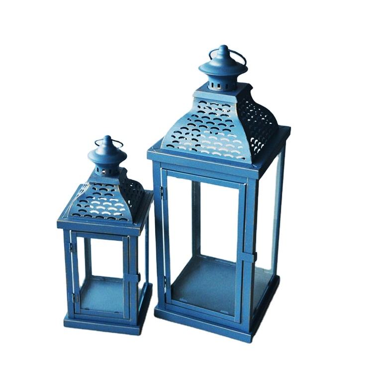 Hot Selling Lanterns Hanging Glass Iron Wind Lantern Light Holder Lantern Outdoor Christmas Moroccan Decorative