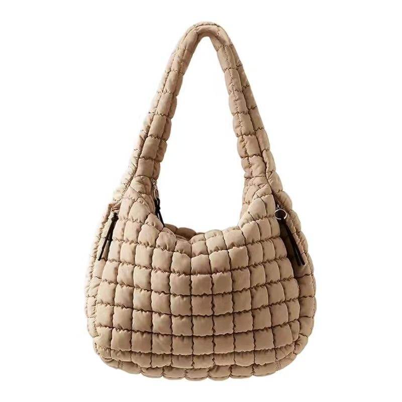 Hot Selling Large Capacity Lightweight Nylon Screen Printed Fashion Quilt Puffer Tote Bag Premium Promotional Handbag