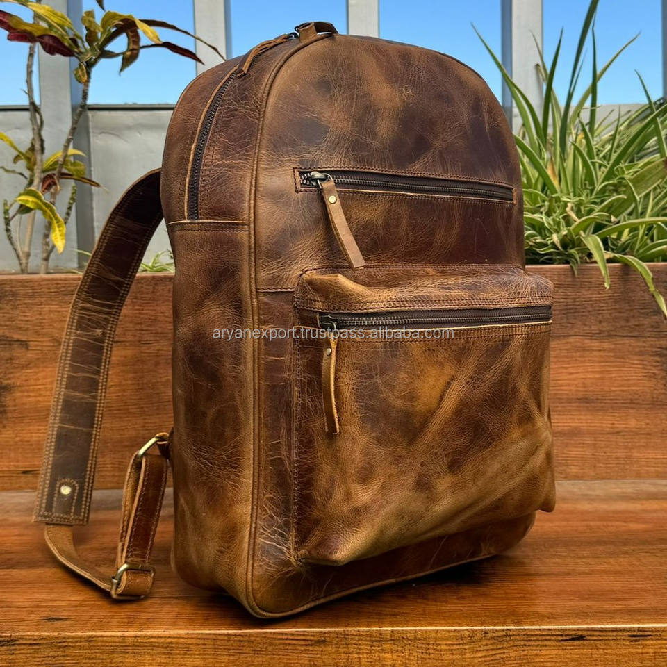 Hot Selling Large Capacity Portable Leisure Full Grain Leather Laptop Backpack Durable Genuine Leather 15.6 Inch Laptop Backpack