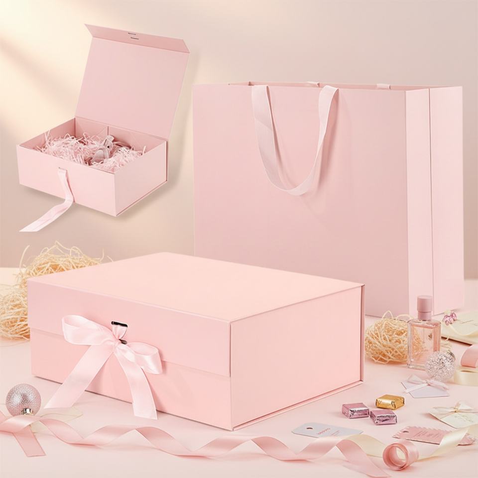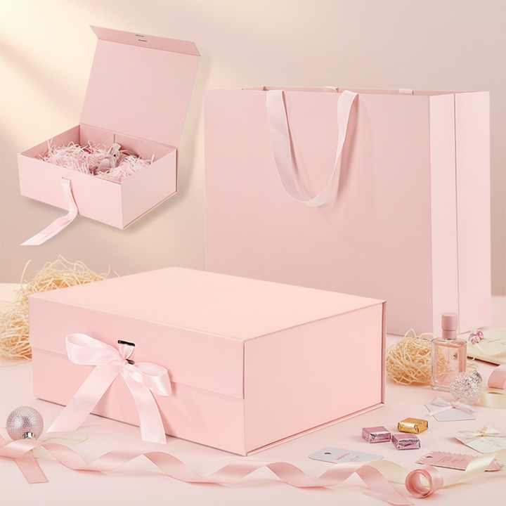 Hot Selling Large Light pink Boxes with Magnetic Close for Gifts Cardboard Folding Luxury Gift Packing Box with Ribbon