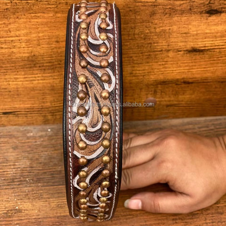 Hot Selling Latest Floral Hand Tooled Leather Dog Collar for Pets Real Genuine Leather Padded Adjustable Accessory for Neck Belt