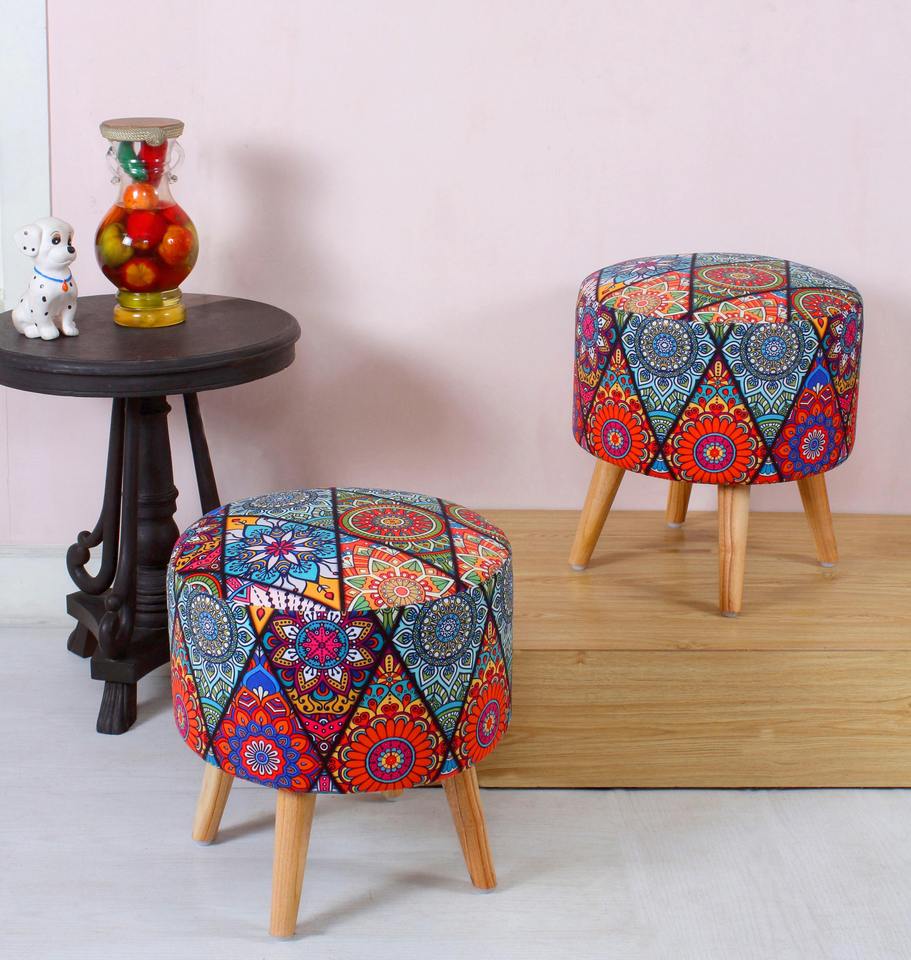 Hot Selling Living Room Furniture Round Pouf Tufted Velvet Stools Ottoman with Wheel Legs