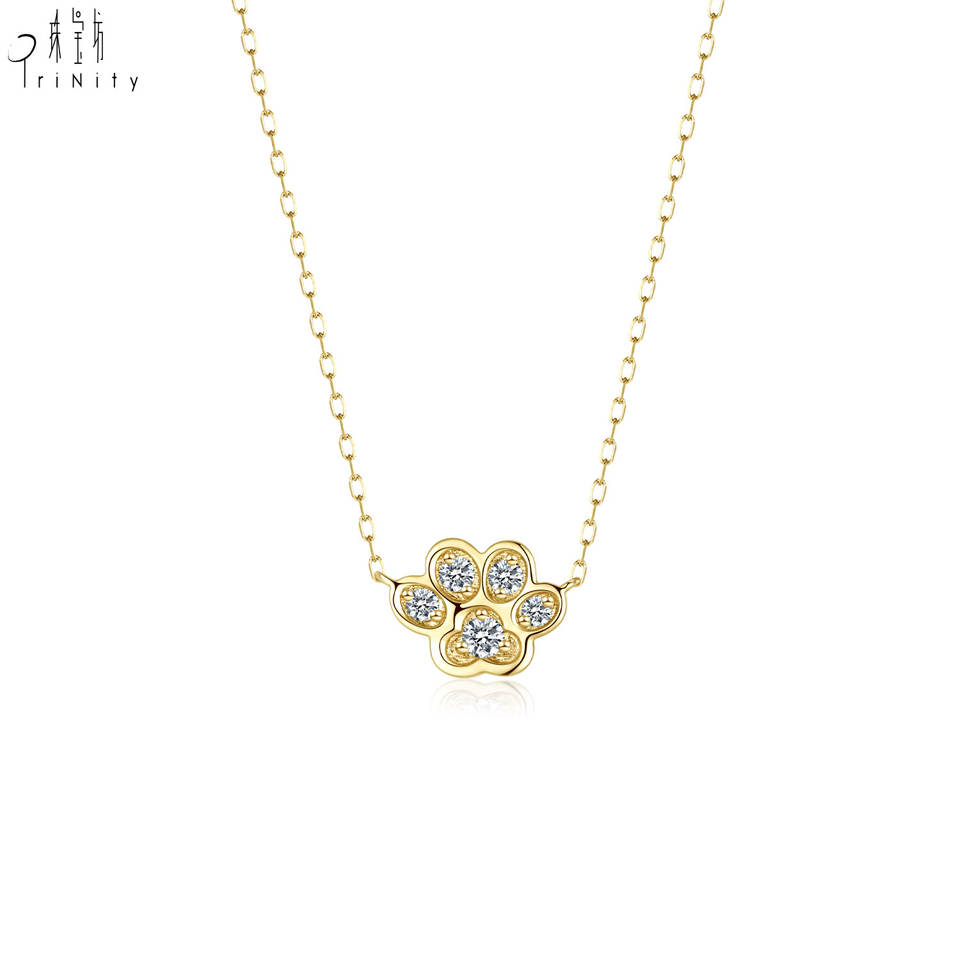 Product Name:Animal Paw design 18K Solid Gold Natural Diamond Pendant Necklace