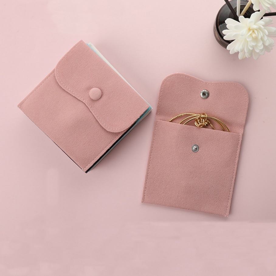 Hot Selling Low MOQ Velvet Jewelry Pouch Necklace Earring Ring Gift Packaging Flannelette Bag with Button Reusable Luxury