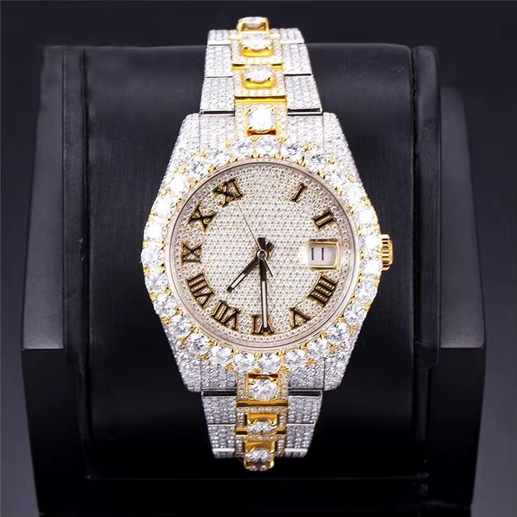 Hot Selling Luxury Automatic Ice Hip Hop Watch for Men Women Diamond Dial Window VVS Moissanite Handmade Fully ced Hidden Clasp