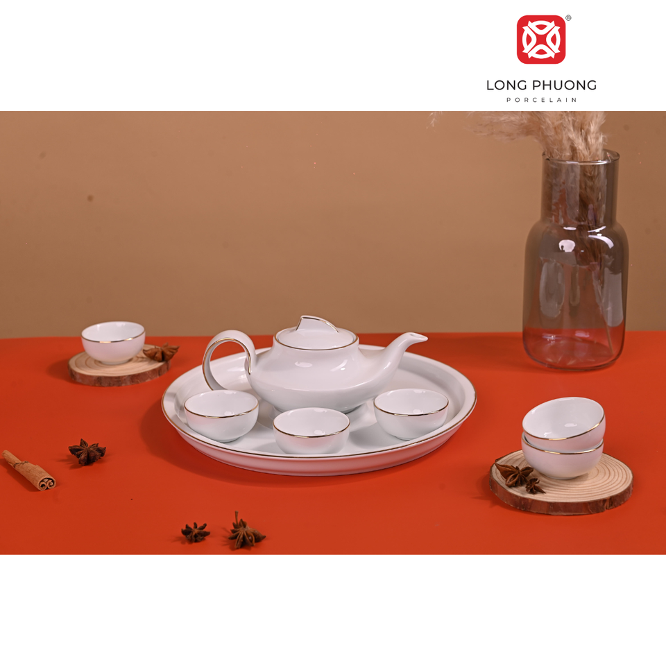 Hot Selling Luxury Ceramic Gold Rim Porcelain Tea Set Small Restaurant/Hospital Direct Factory Price Long Phuong Group Supplier