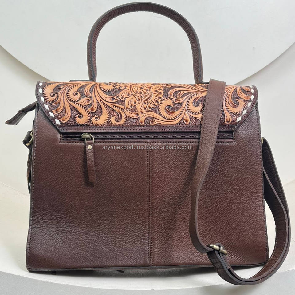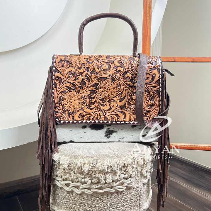 Product name:Hand Tooled Cowhide Leather Fringe Crossbody Bag