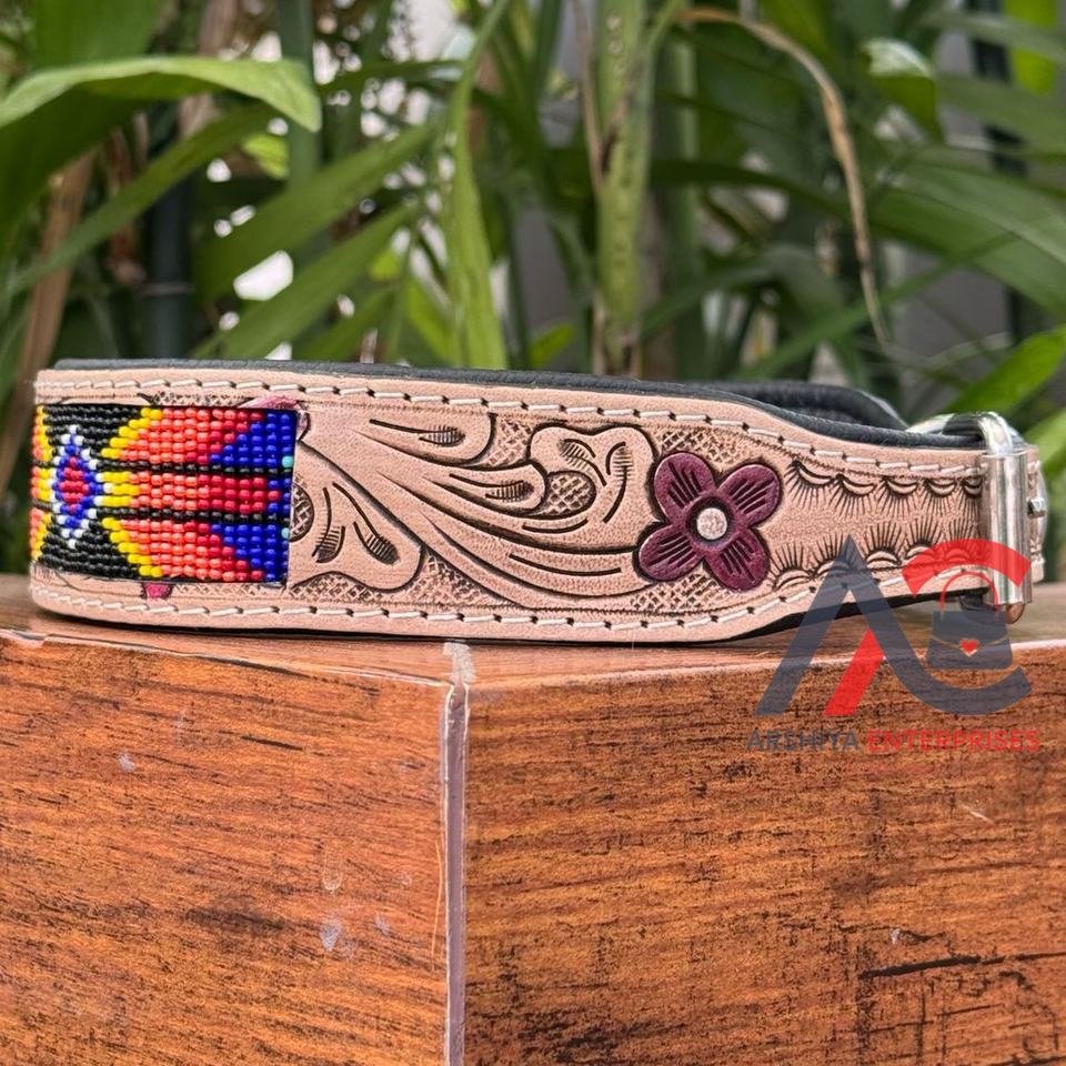 Product Name:Hand Tooled Leather Beaded Adjustable Dog Collar