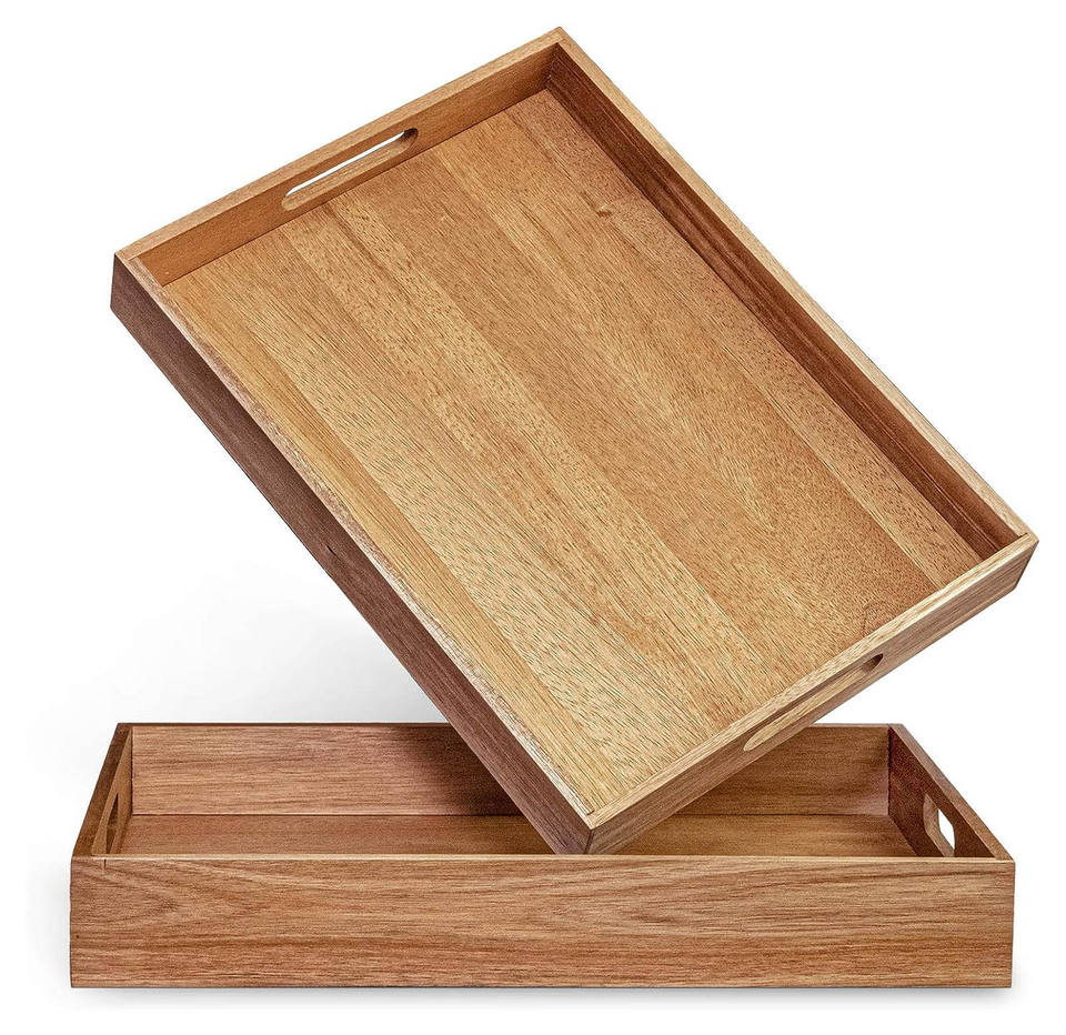 Hot Selling Mango Wood Serving Tray Set of 2 Coffee Serving & Decor Use Tray With Handles for Hotel & Restaurants at Cheap Price