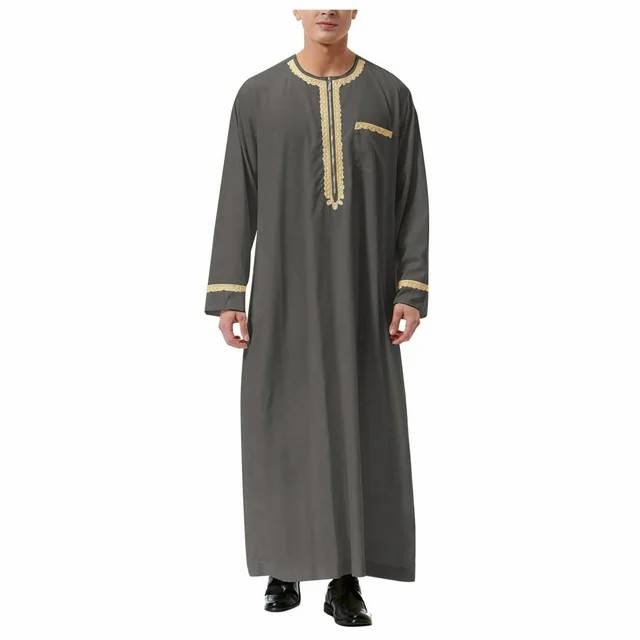 Hot Selling Long Sleeve Juba Thobe Traditional Islamic Clothing for Men Arab Qatar Dubai Fashion Wear Jubbah