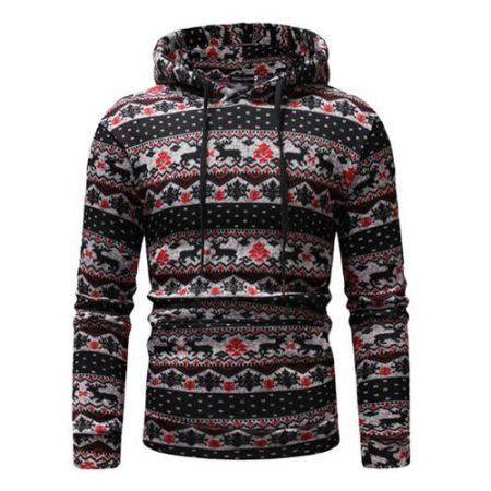 Hot Selling Men's Christmas Snowflake Print 100% Cotton Oversized Hoodie High Street Vintage Style Embroidered Long Sleeve Draw