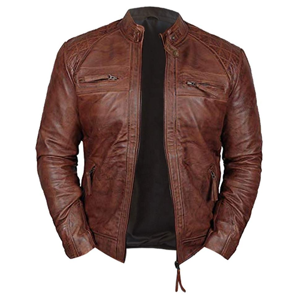 Hot Selling Men's Genuine Cow Skin Leather Jacket Brown Bomber Motorcycle Biker Coat Autumn Spring and Winter jacket for men