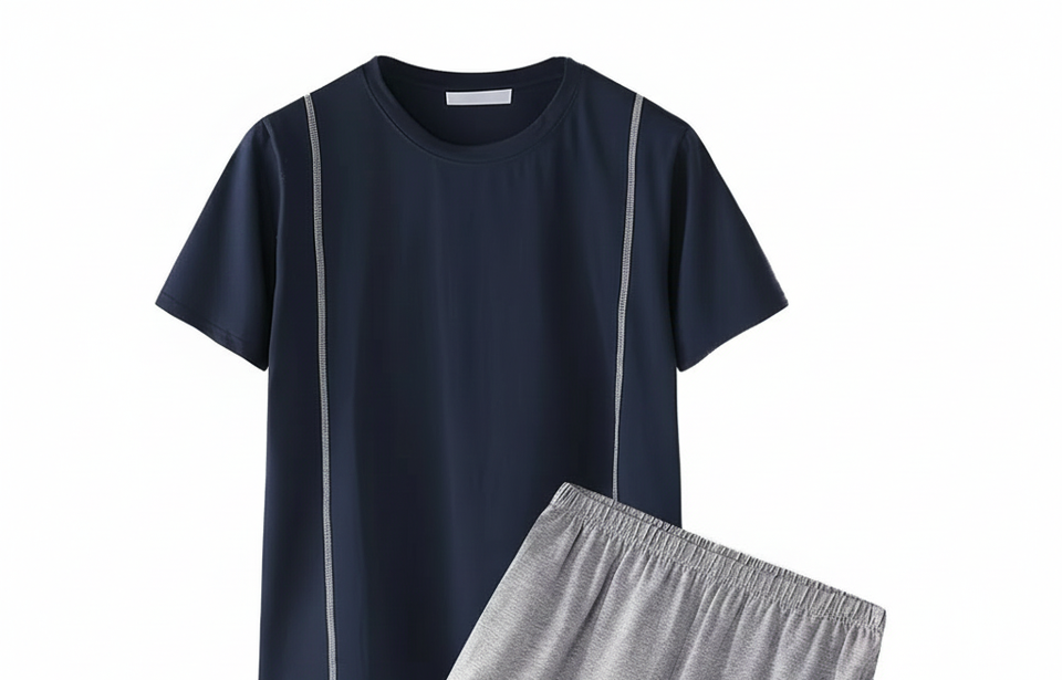 Hot Selling Mens Casual Summer Short Sets 100%Cotton Breathable Solid Color Two Tone White Lined Tshirt Elastic Waist Side
