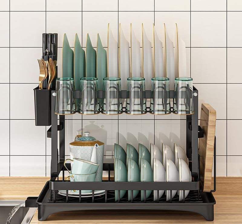 Hot Selling Metal Dish Drainer Organizer Rack Drainer Dish Rack Dish Drying Rack With Cutting Board Holder