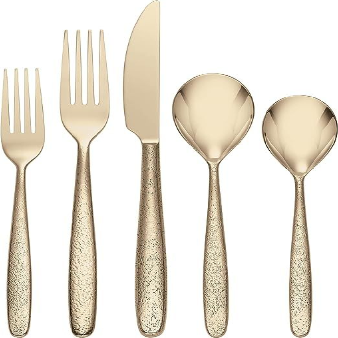 Hot Selling Metal Flatware Set With 5 Pieces in Golden Polished for Tableware Kitchenware Usage In Reasonable Price