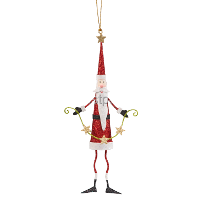Hot Selling Metal Santa Christmas Hanging Decorations with Rustic Festive Ribbon Accent hanging, plastic, christmas baubles