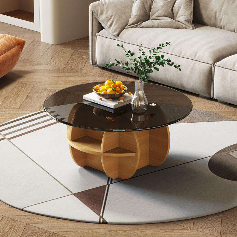 Hot Selling Minimally Tempered Glass Luxurious Modern Living Room Creative Home Small Unit Circular Wooden Tea Table Set