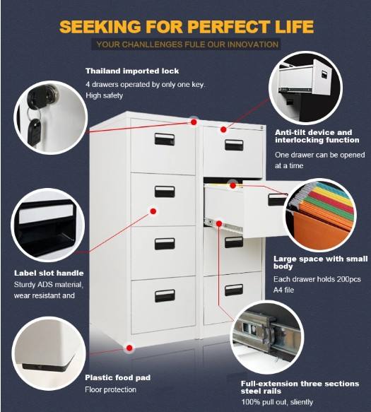 Hot Selling Modern 4-Drawer Steel Vertical Metal Filer Hanging File Cabinet Lockable Adjustable for Outdoor School or Hotel Use