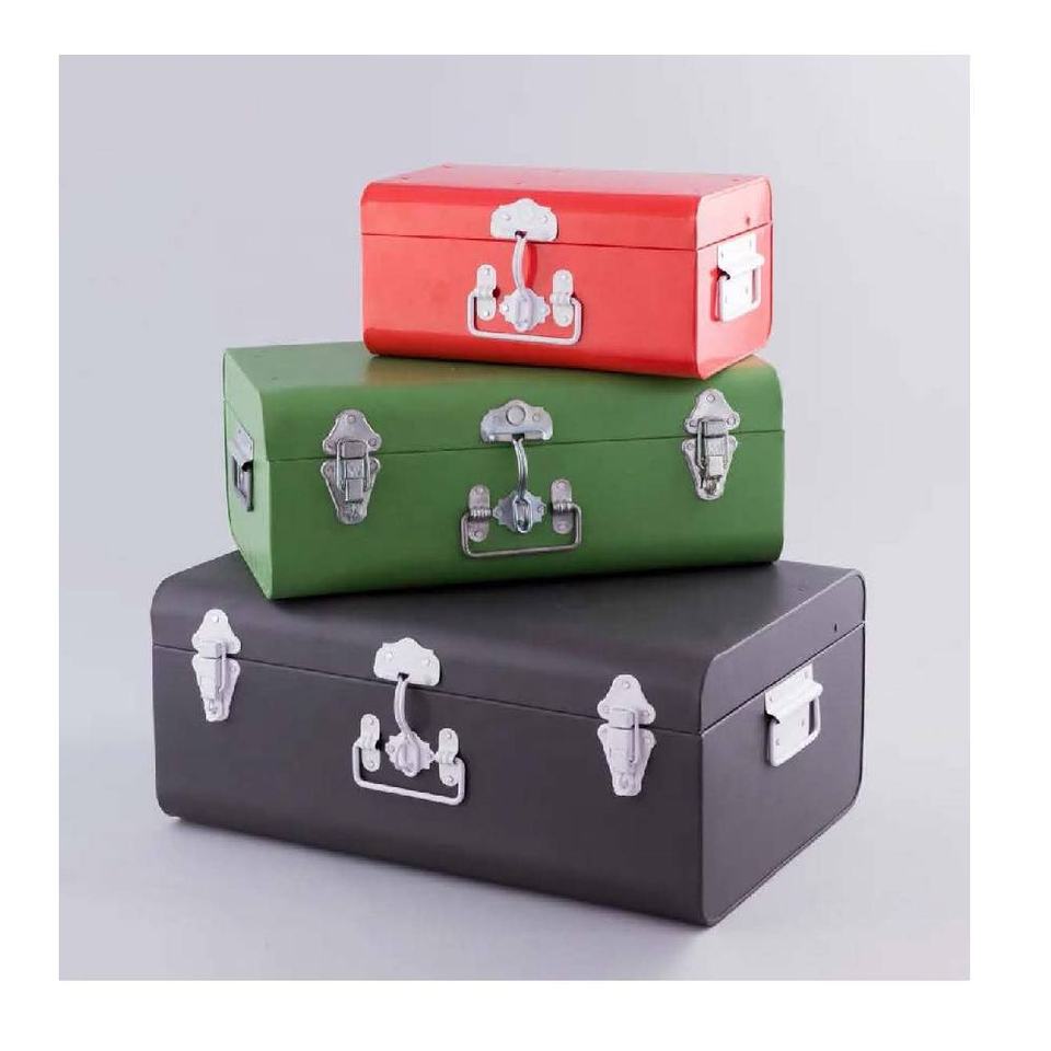 Hot Selling Modern Exterior Design Iron Storage Trunks Set of 2 Iron Storage Chests with Lids Metal Storage Trunks with Lock