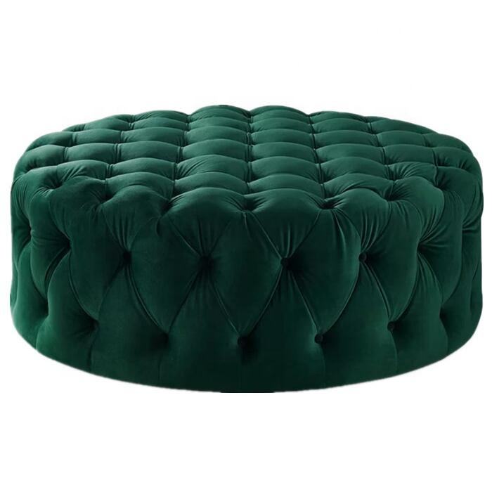 Hot Selling Modern Home Furniture Round Velvet Fabric Tufted Pouf Ottoman Stool Coffee Table